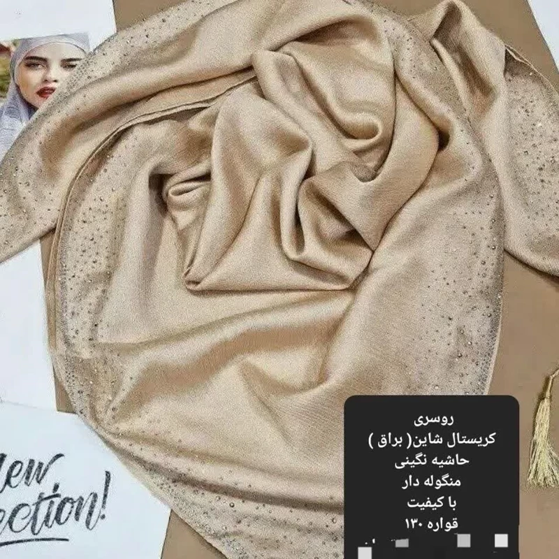 روسری کریستال شاین براق حاشیه نگین دار