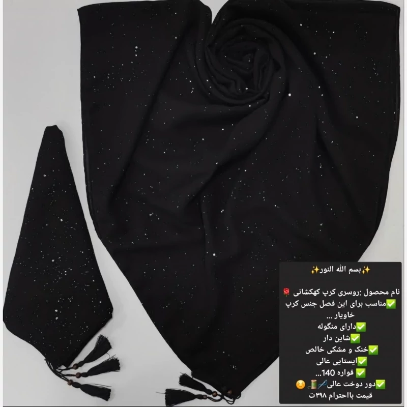 کیفیت عالی کرپ خاویار منگوله دار شاین دار قواره 140 دور دوخت