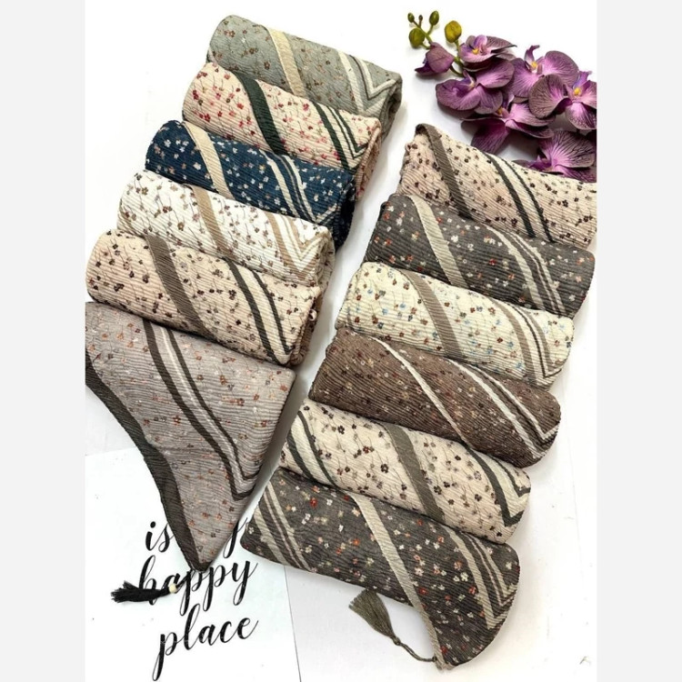 ✨بسم الله النور✨ نام محصول :روسری پلیسه طرح دار ✅کیفیت کار عالی ✅طرح گلی 🌻 ✅12 رنگ شیک و مجلسی 😍 ✅ قواره 140 ✅دور دست دوز 🪡🧵 ✅ لیز نیست قیمت با احترام 530 ت